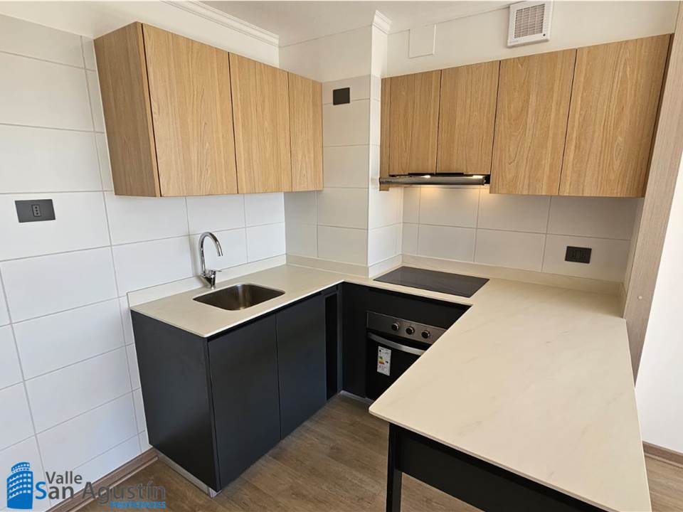 – Cocina americana amoblada y equipada (horno empotrado, encimera, campana)