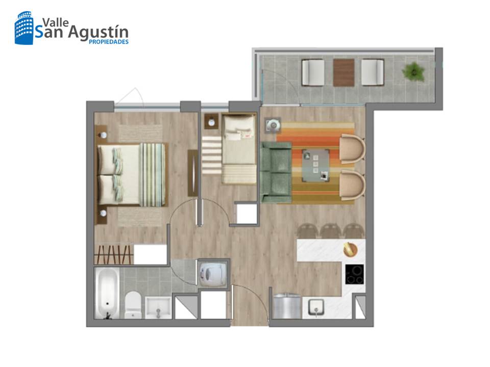 – Cocina americana amoblada y equipada (horno empotrado, encimera, campana), muebles cubierta de granito