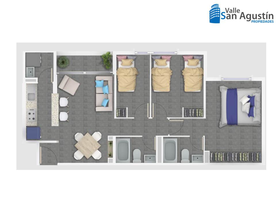 – 3 dormitorios con closet (cortinaje roller instalado)