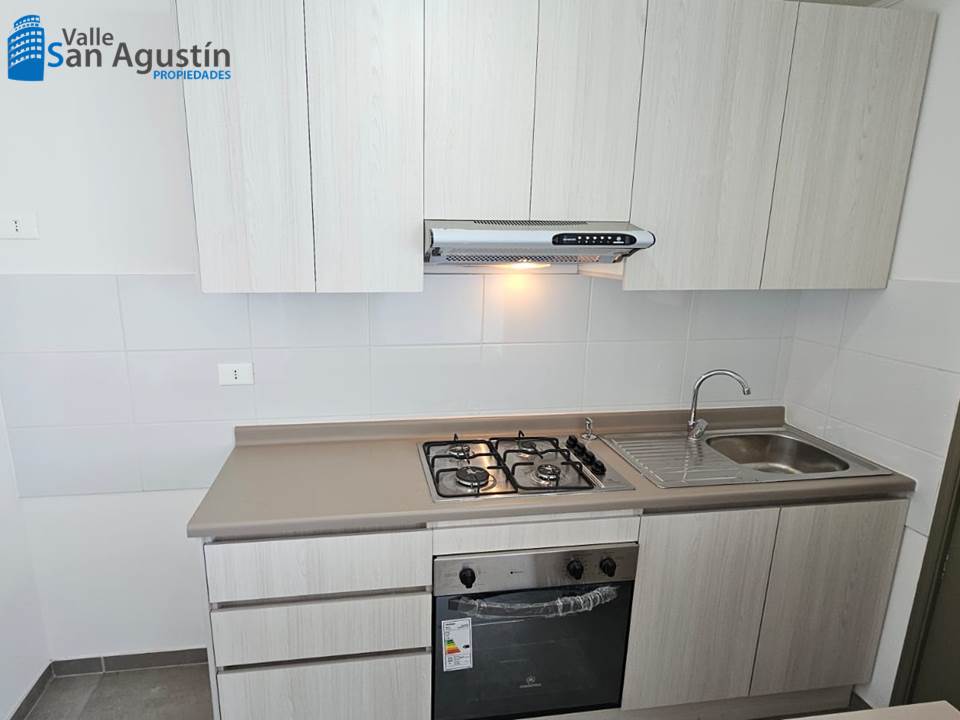– Cocina americana amoblada y equipada (Horno empotrado, encimera y campana)